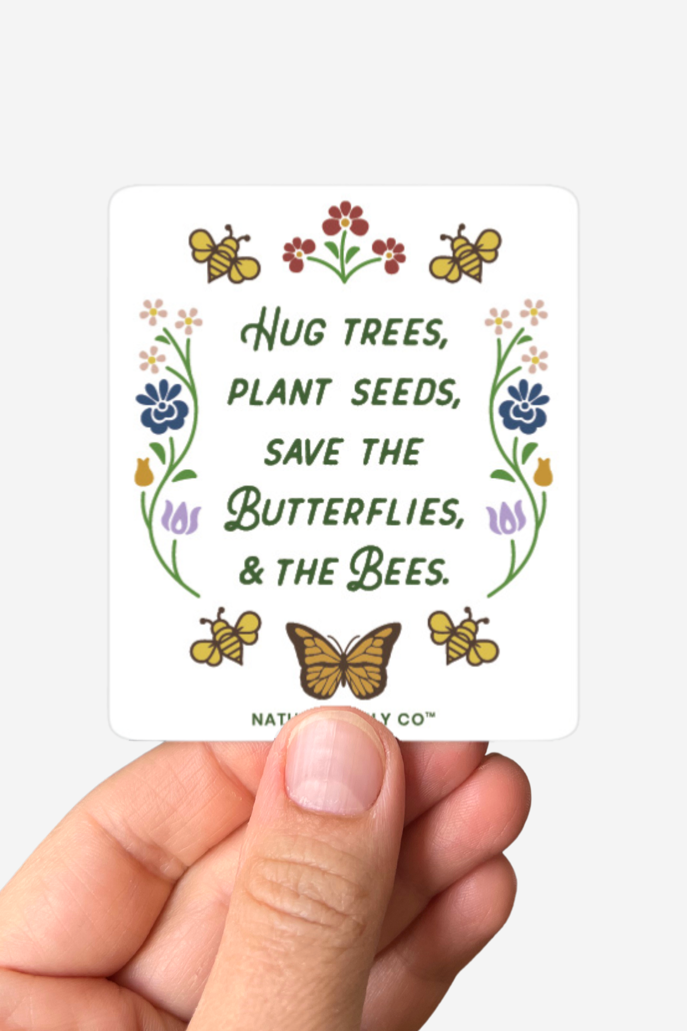 Hug Trees, Plant Seeds, Save the Butterflies and the Bees Sticker