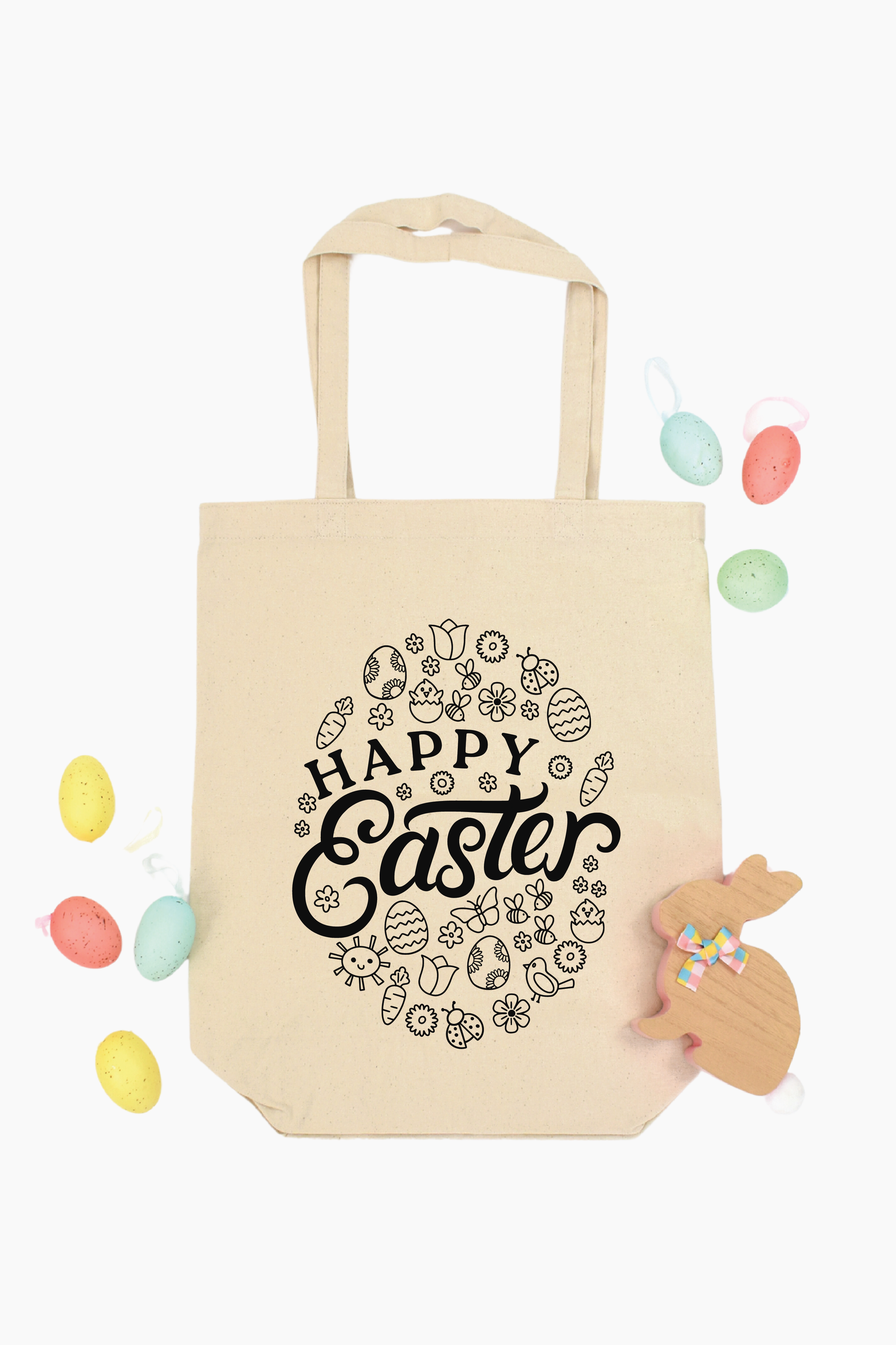 *LIMITED EDITION* Grab an eco-friendly tote bag for your little one this Easter! This 100% cotton canvas tote bag is a perfect alternative to an Easter basket: fill it full of goodies or take it with you on an Easter egg hunt! Leave the bag as it is or turn it into a DIY project!! Simply grab some fabric markers (not included) and let them color the bag for a fun, interactive craft project.